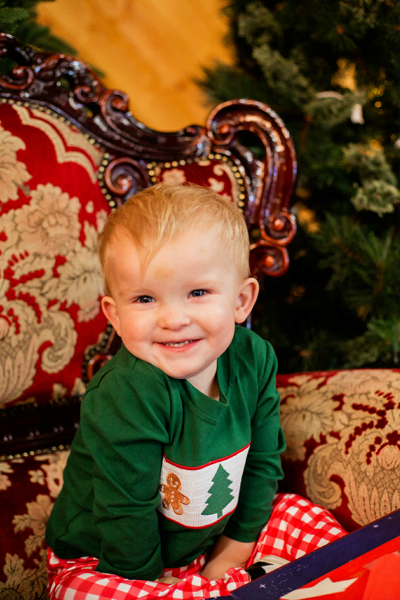 Cozy, festive, and picture-perfect—our Gingerbread Forest Set brings holiday joy in the sweetest way. This two-piece outfit features a deep forest green long-sleeve top with an embroidered panel showcasing two smiling gingerbread friends and a Christmas tree in between. Paired with stretchy red gingham pants, it’s the perfect outfit for holiday photos, cookie decorating, Christmas parties, and magical memory-making.