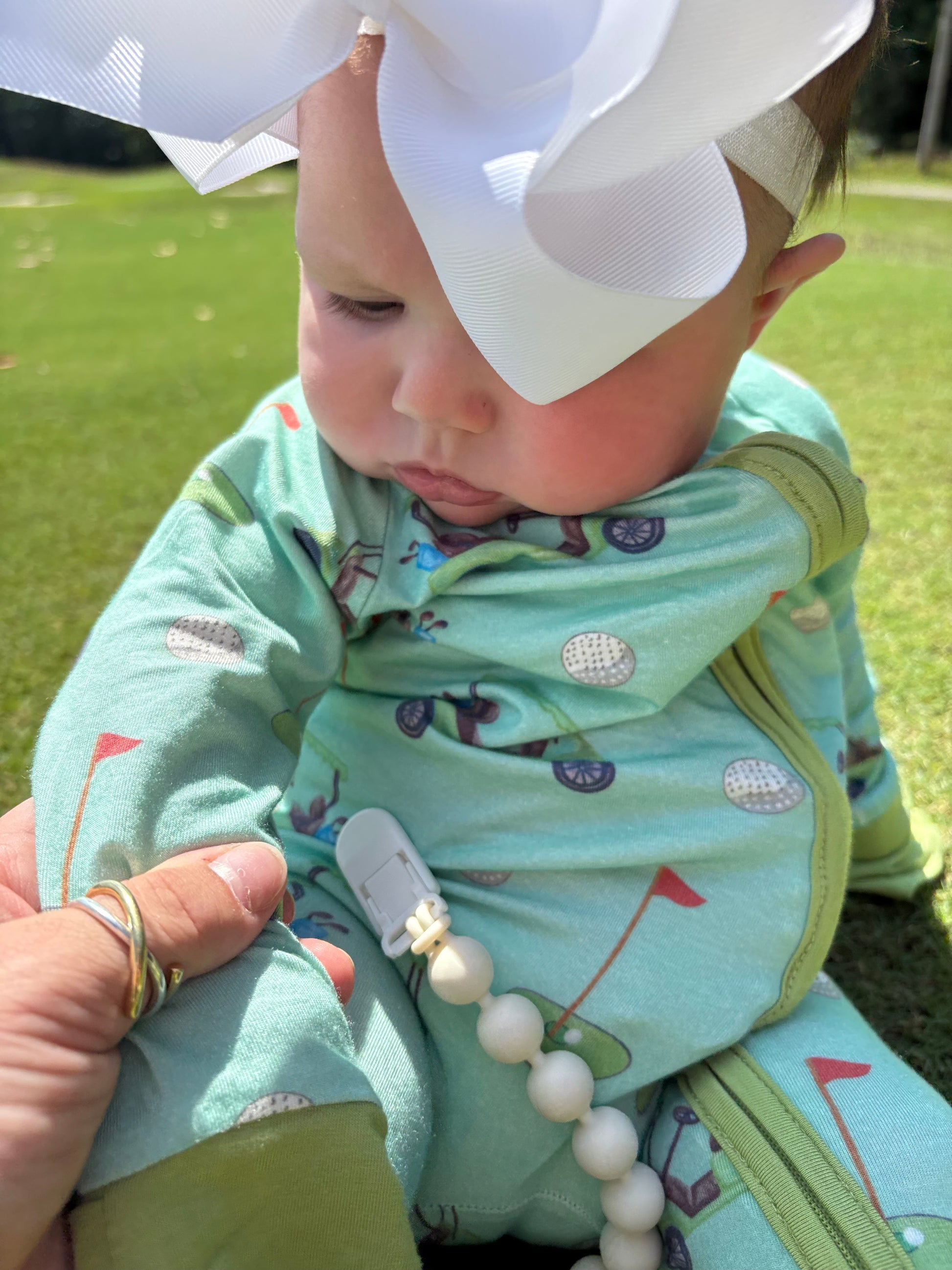 Tee time has never looked sweeter! Our Little Caddy Bamboo Sleeper features a playful golf print with tiny clubs, flags, and golf balls for your little one’s day on the green. Made from our signature buttery-soft bamboo blend, it’s breathable, stretchy, and perfect for sensitive skin. Designed with a double zipper for easy changes and fold-over hands and feet for cozy comfort from nap to playtime.